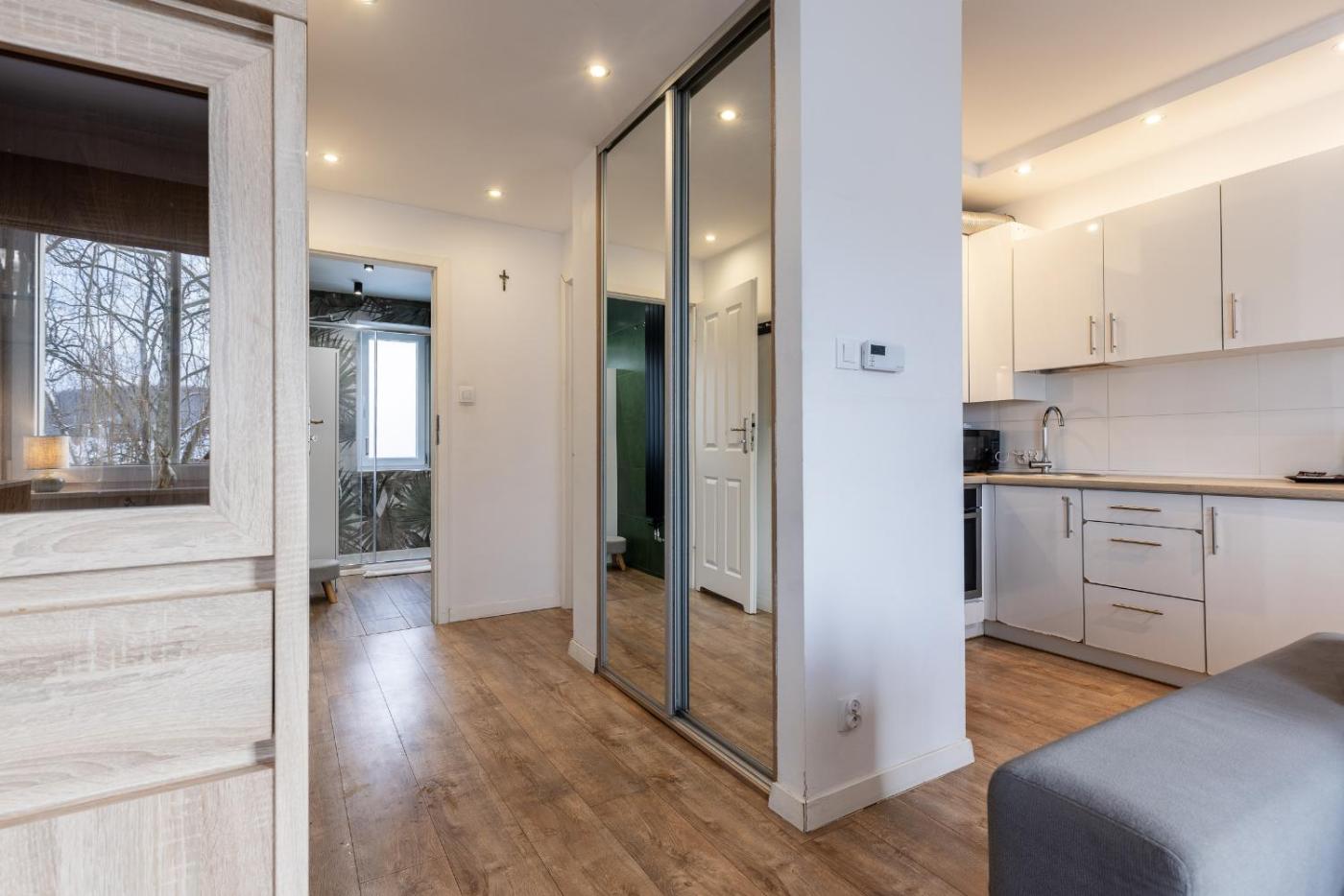 Apartament z 1 sypialnią. This apartment comprises 1 living room, 1 separate bedroom and 1 bathroom with a shower and a hairdryer. Meals can be prepared in the kitchenette, which is equipped with a stovetop, a refrigerator, kitchenware and an oven. The apartment provides a washing machine, an electric kettle, a game console, a sofa and a flat-screen TV. The unit offers 2 beds. Apartament - 4 osobowy. Powierzchnia pokoju ok.: 37 mkw.
